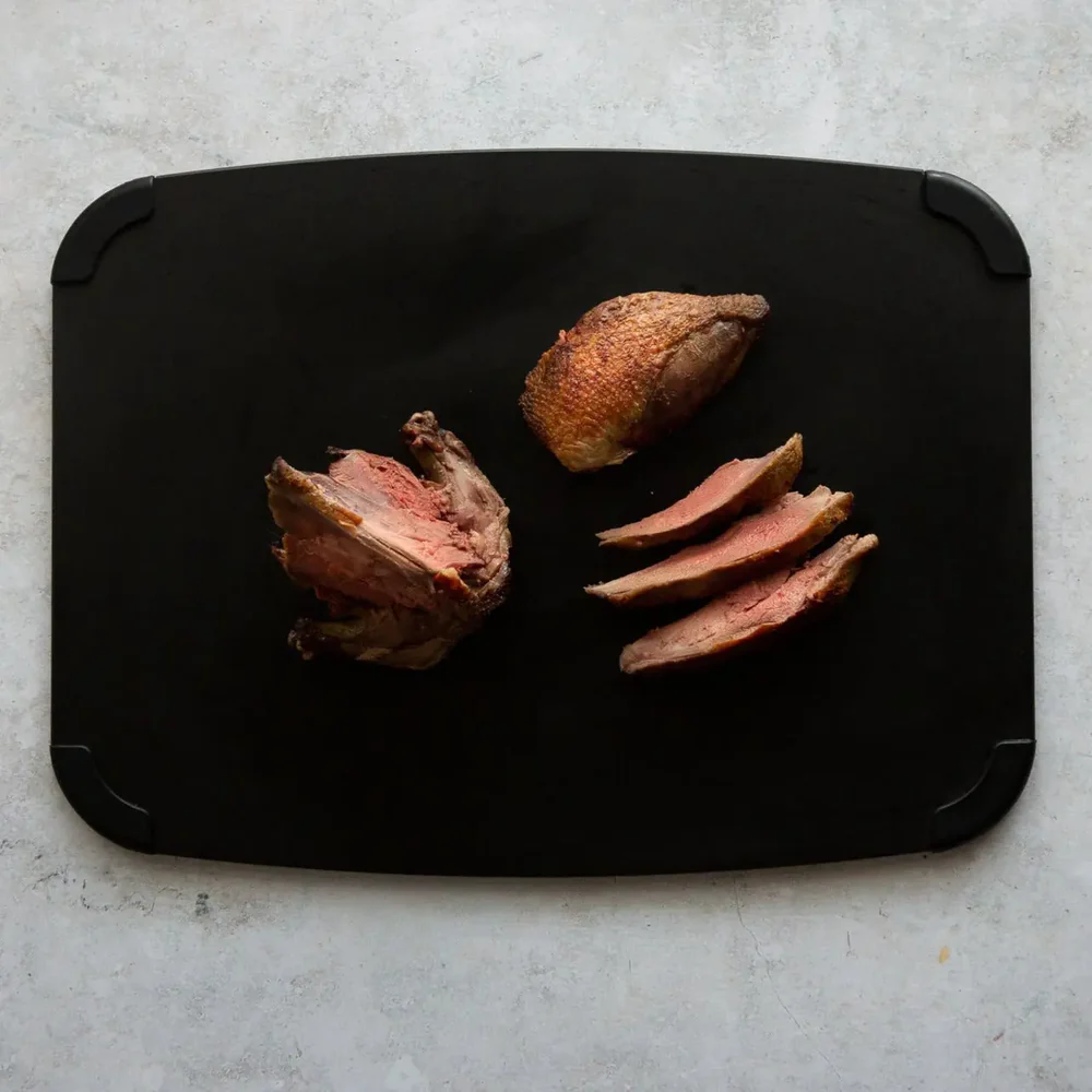 The Squab still has its blood within to intensify the flavour and colour of the meat. However, when we vacuum-pack the birds before shipping, some of the blood may be drawn out during transit. Although the meat paper should absorb this, you may notice some blood on the skin when you receive and unwrap your bird. In such a case, we recommend rinsing the bird before cooking and ensuring that it is dried carefully before cooking.