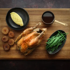 Poulet de Bresse AOC is French poultry’s crème de la crème, renowned for its exceptional flavour and texture. This prestigious chicken boasts a protected designation of origin (AOC) status, guaranteeing its authenticity and quality. Raised free-range in the Bresse region of eastern France, these chickens are fed a strict diet of cereals and milk, resulting in succulent, flavourful meat with distinctive blue-tinged skin and white feathers.