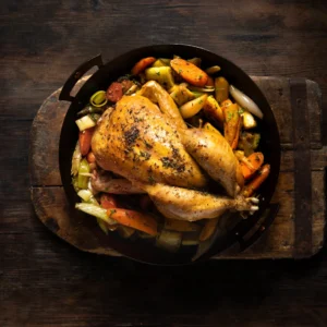 What makes this chicken truly exceptional? It’s the culmination of generations of expertise, where tradition meets terroir. The Cou-Nu birds, distinguished by their characteristic “naked necks,” are corn-fed with maize grown right on the Tauzin family farm. The result is nothing short of culinary perfection: meat that’s remarkably firm yet juicy, with a depth of flavour that surpasses even the prestigious Label Rouge standard.