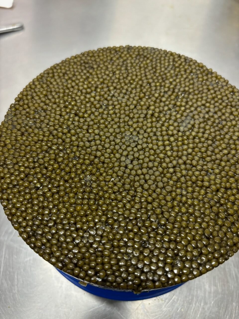 Imperial Oscietra caviar (also known as Osetra, Ossetrova, Asetra and Osietra caviar) is sourced from the Russian sturgeon (Acipenser Guelden Staediti), a species that can grow to over 60 kg (132 lbs) and live up to 50 years on average. These fish take up to 10 years to reach egg maturity, producing the highly desired sturgeon caviar. Oursis sourced sustainably from controlled farms in Poland, where expert cultivation ensures the highest quality and consistency in each batch.